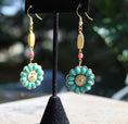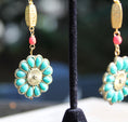 Turquoise Inlaid Floral Earrings in Antique Byzantine Gold Finish