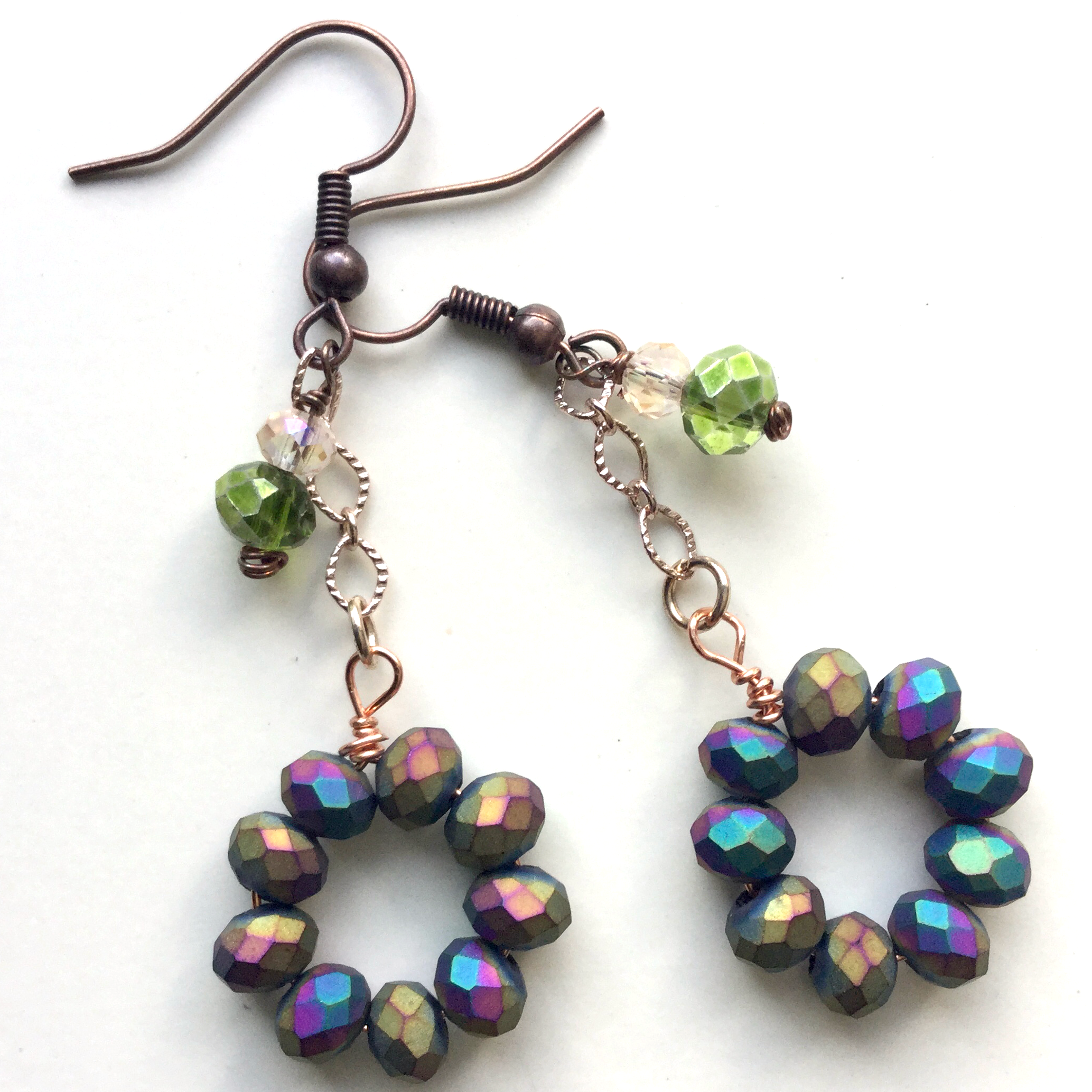 Drop Earrings with Blue Iris Coated Matte Crystal Wreath