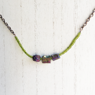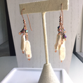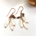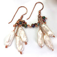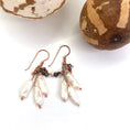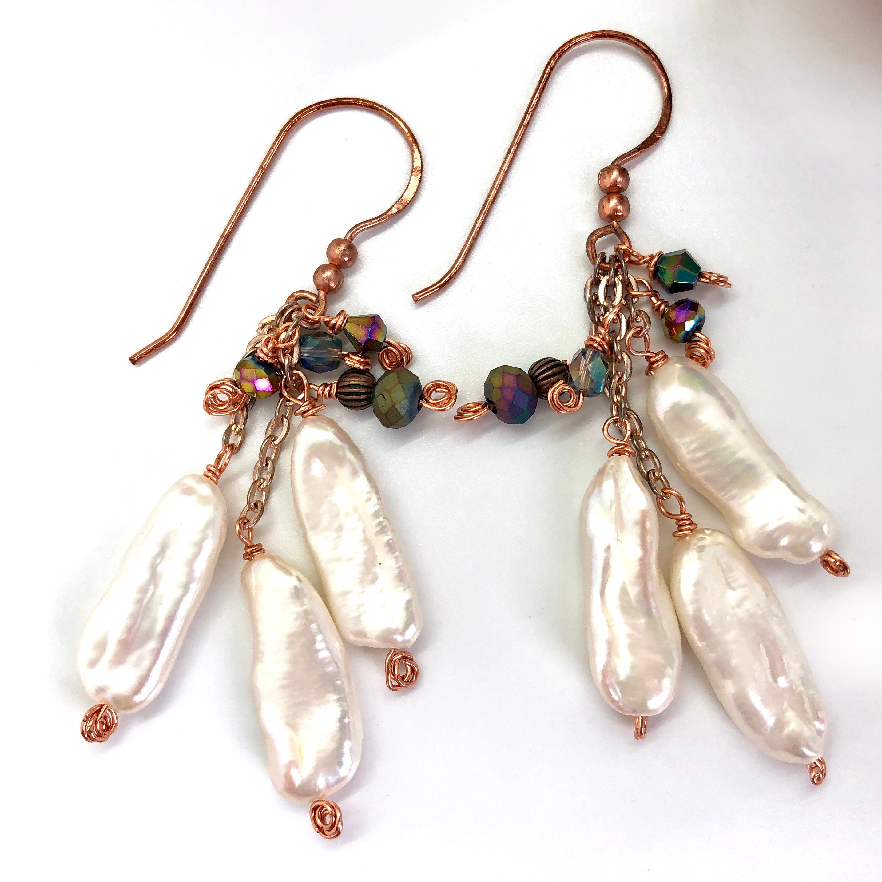 Triple Biwa Pearl, Crystal and Copper Earrings